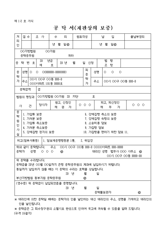 9,000원/월재판상의 보증을 위한 공탁서입니다.