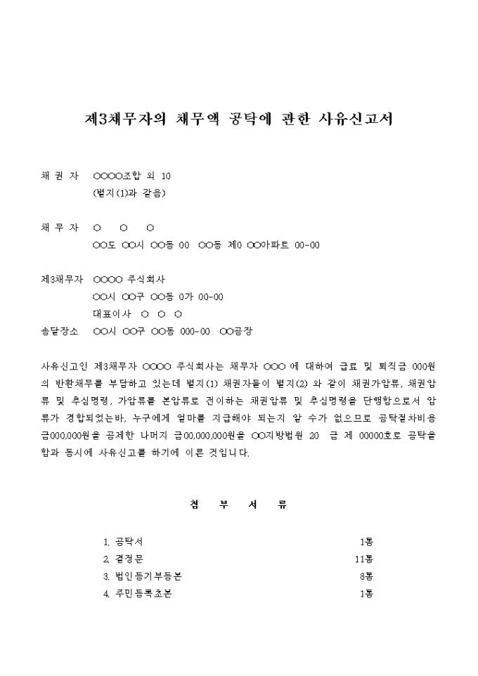 9,000원/월제3채무자의 채무액 공탁에 관한 사유신고서입니다.