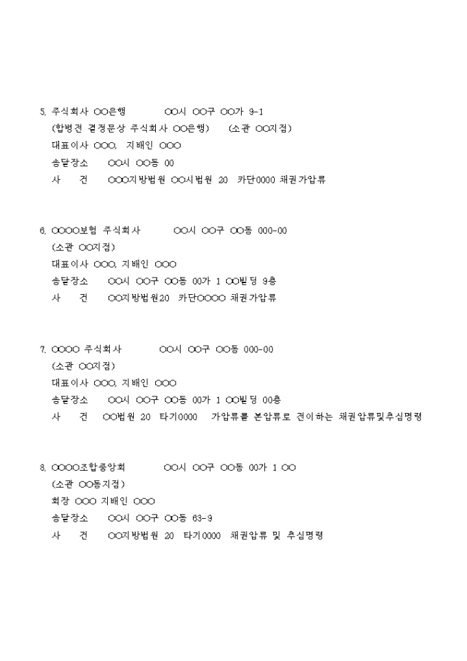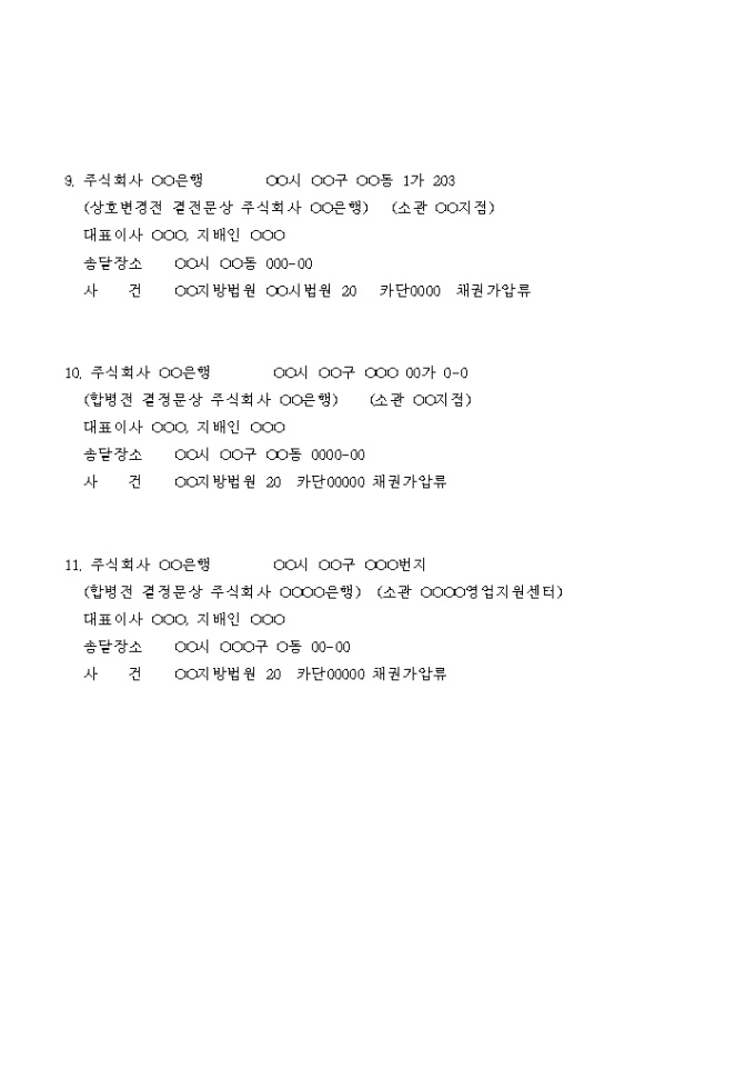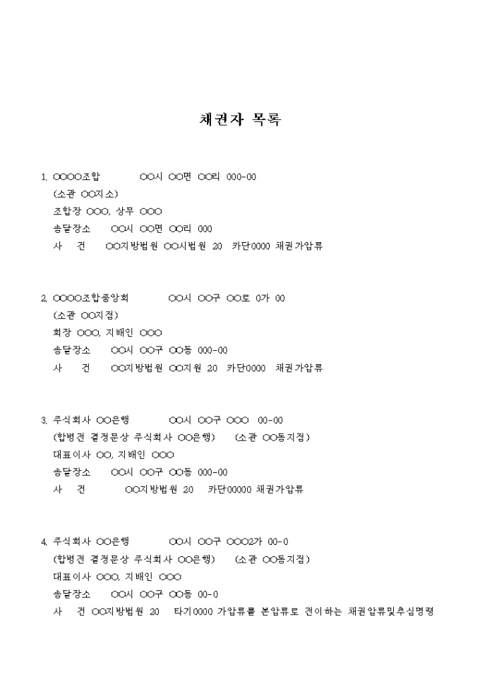 9,000원/월집행공탁에서의 채권자 목록입니다.