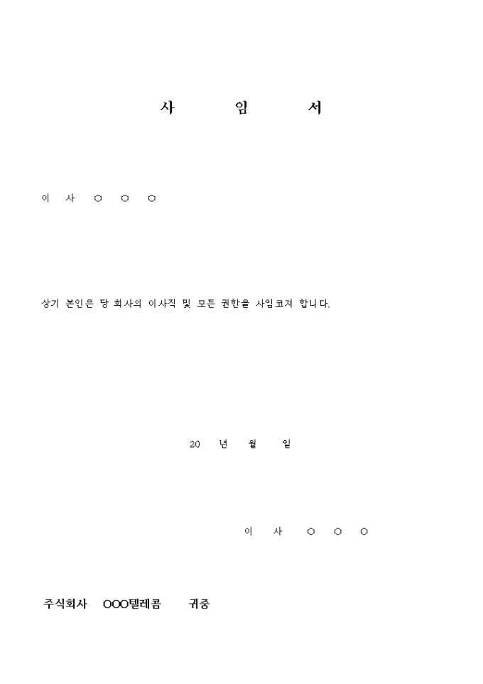 9,000원/월이사직을 사임하는 사임서입니다.