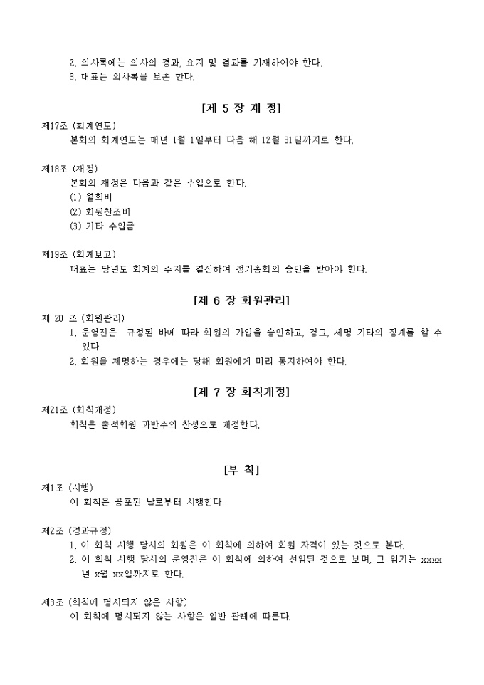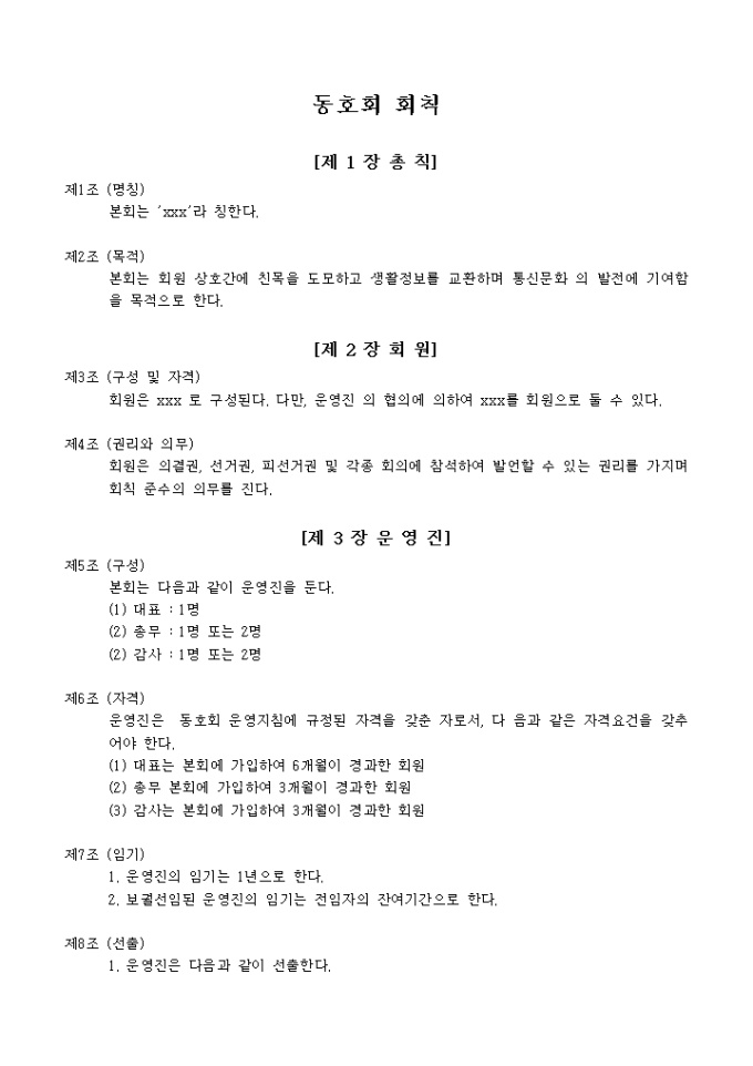 9,000원/월동호회회칙입니다. 여러 종류의 동호회에서 사용하는 회칙으로 간결한 내용으로 만들어진 서식입니다.