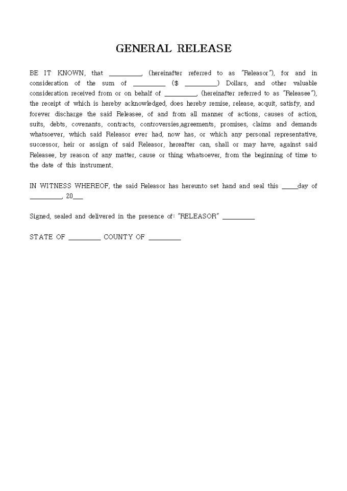 9,000원/월법률서식인 GENERAL RELEASE입니다.