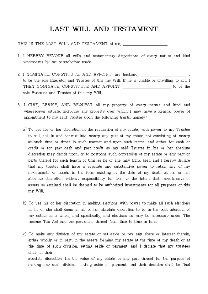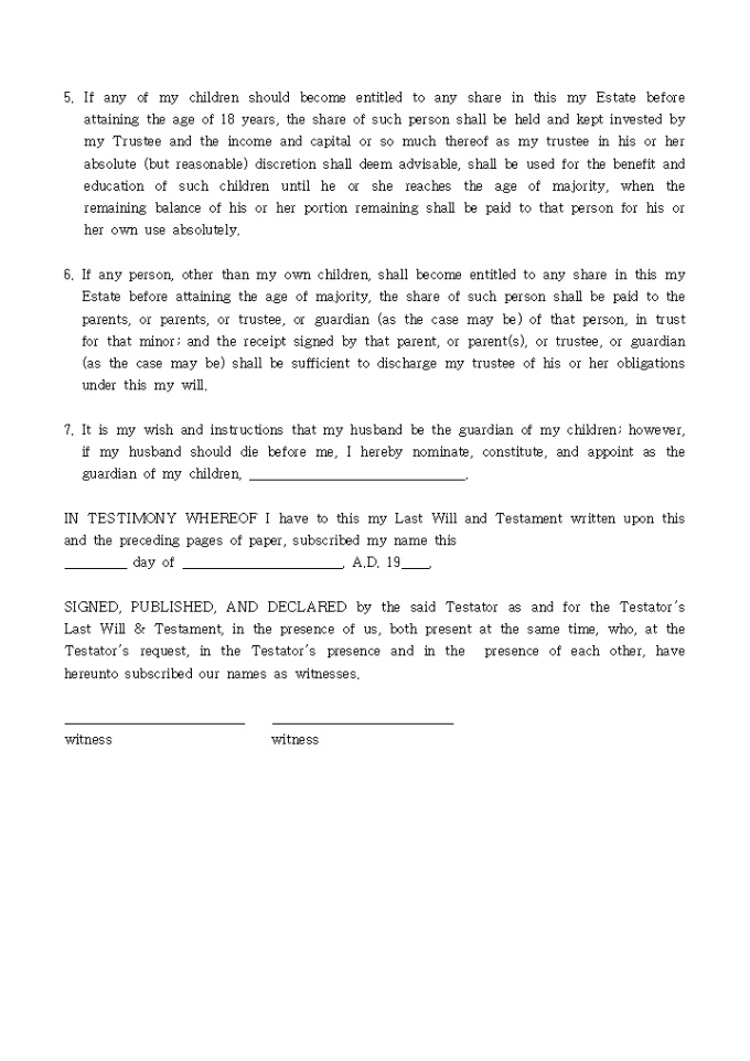 9,000원/월7개의 조항으로 구성되어 있는 LAST WILL AND TESTAMENT입니다.