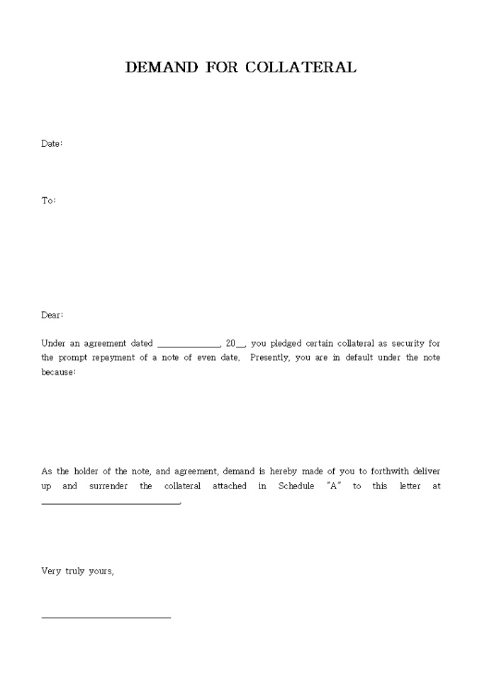 9,000원/월DEMAND FOR COLLATERAL 입니다. 아래는 전체내용중 일부분입니다. Under an agreement dated ______________, 20__, you pledged certain collateral as security for the prompt repayment of a note of even date. Presently, you are in default under the