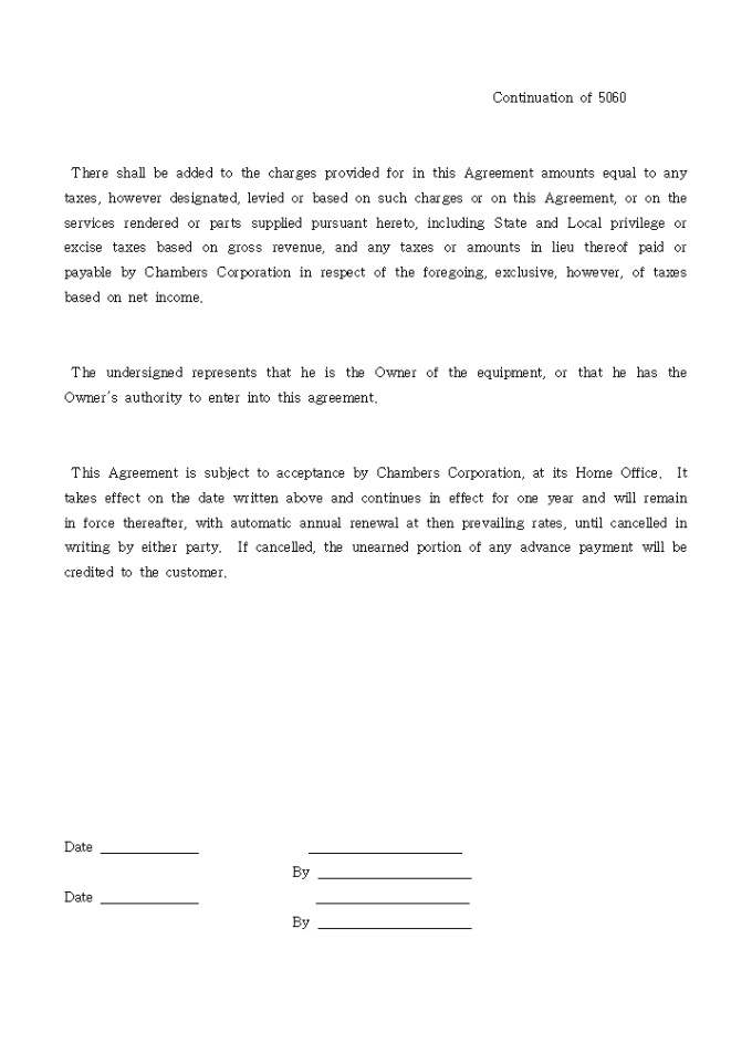 9,000원/월EQUIPMENT MAINTENANCE AGREEMENT입니다. 아래는 전체내용중 일부분입니다. Chambers Corporation agrees to provide maintenance service including up to two maintenance calls annually and interim calls as required at the installation address specified a bove on the equipment
