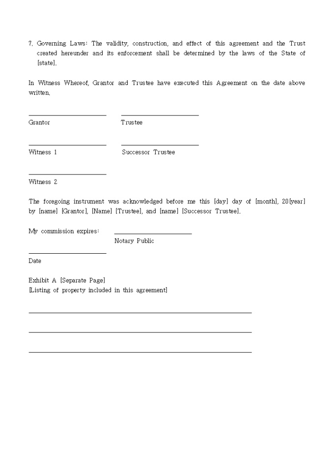 9,000원/월아래는 TRUST AGREEMENT의 내용 중 일부입니다. Irrevocability of Trust. This trust shall be irrevocable and shall not be revoked or terminated by Grantor or any other person, nor shall it be amended or altered by Grantor or any other person.
