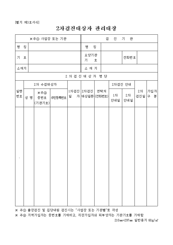 9,000원/월사업장 또는 기관 명칭ㆍ기호ㆍ소재지, 2차 수검대상자, 1차검진 일자, 2차검진 대상질환, 연락처 등을 기재합니다