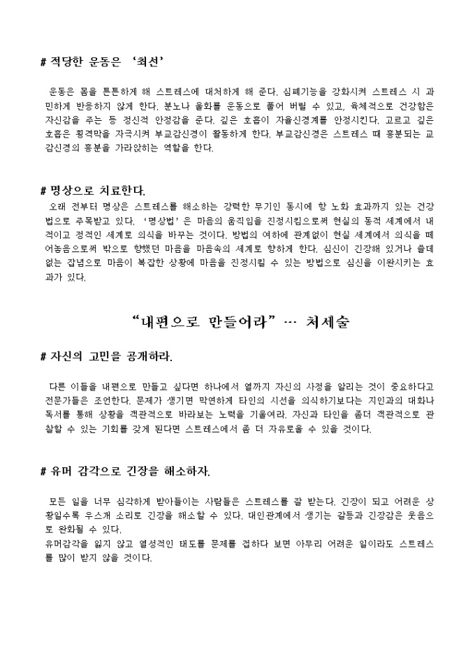 9,000원/월직장인스트레스탈출법입니다. 직장을 다니면서 받는 스트레스를 해소하기 위한 방법들을 나열한 서식입니다.