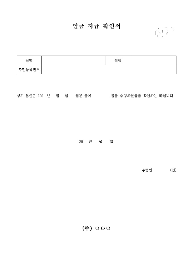 해당월 급여를 수령하였음을 확인할 수 있는 서식입니다.