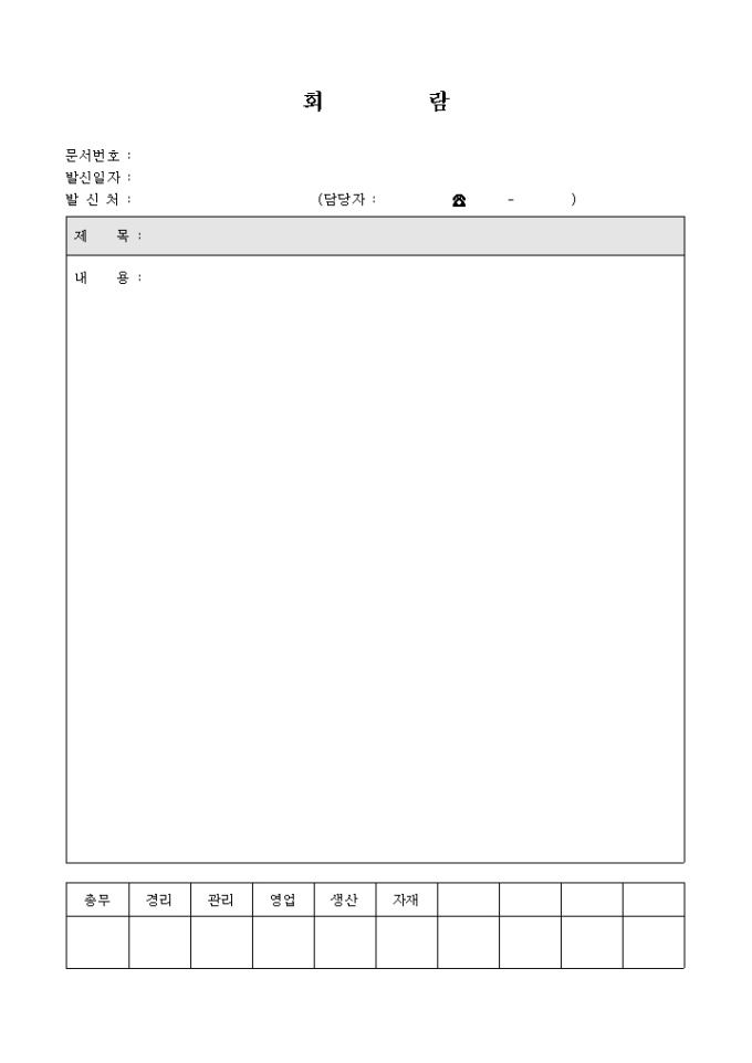 9,000원/월회람입니다. 문서발송에 대한 답신을 할때 보내는 회람 양식입니다.
