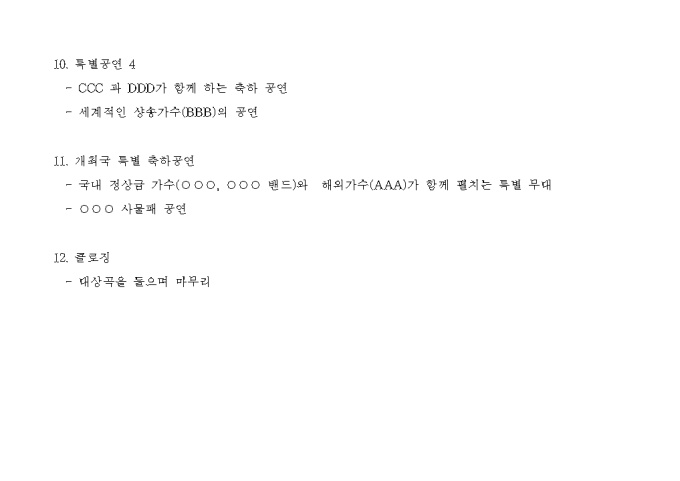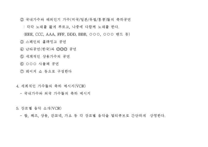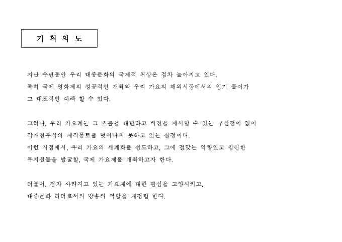 9,000원/월[기획서]국제가요제입니다. 기획서 예제로서 기업, 학교 등에서 사용할 수 있는 서식입니다.