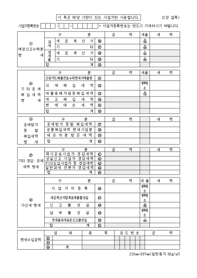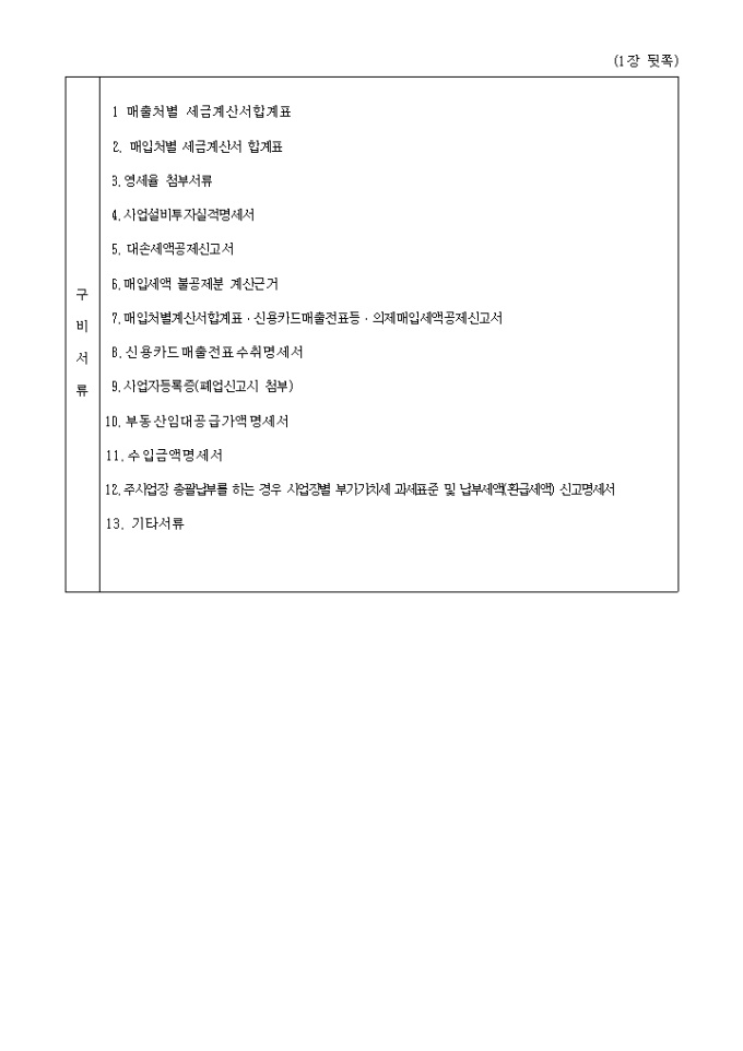 9,000원/월[별지제12호서식] 일반과세자부가가치세(예정·확정·기한후과세표준·영세율등조기환급)신고서 양식입니다. 부가가치세법 제18조·제19조 또는 제24조와 국세기본법 제45조의 3의 규정에 의하여 신고하실때 사용하는 양식입니다.