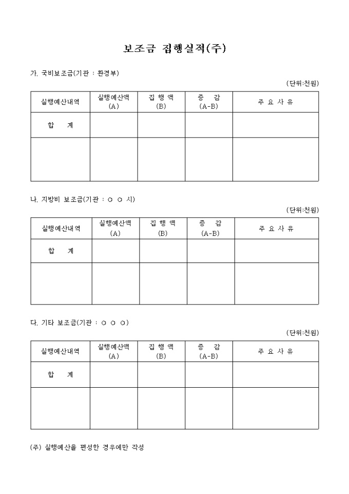 9,000원/월보조금 집행실적을 작성할때 사용할 수 있는 문서입니다.
