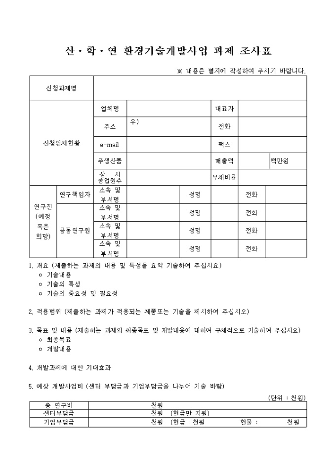산·학·연 환경기술개발사업 과제 조사표