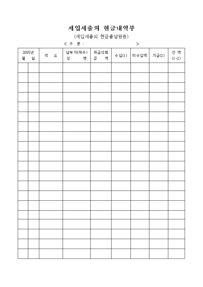 9,000원/월세입세출외 현금내역부를 작성할때 사용할 수 있는 문서입니다.