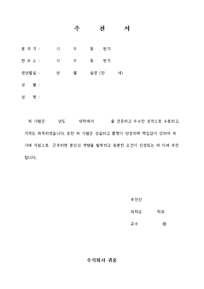 9,000원/월회사 추천서를 작성할때 사용할 수 있는 문서입니다.