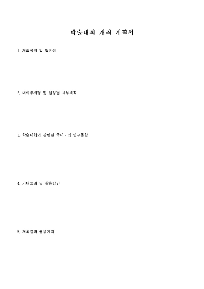 9,000원/월학술대회 계최를 위한 계획서를 작성할때 사용할 수 있는 문서입니다.
