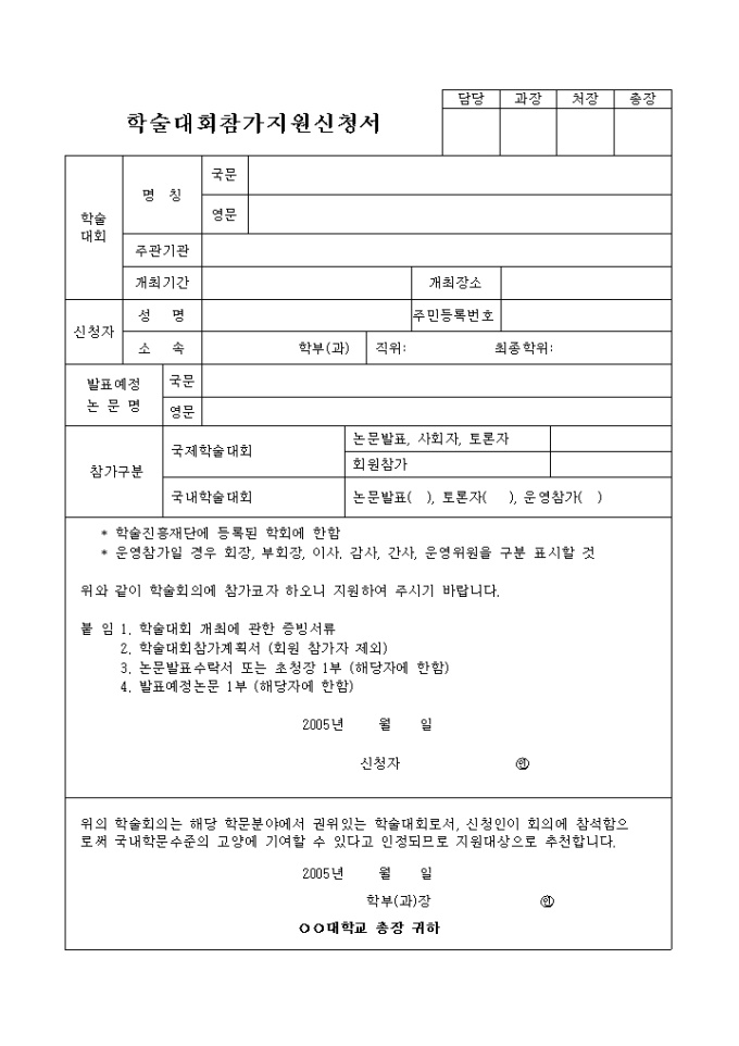 9,000원/월학술대회참가지원신청서