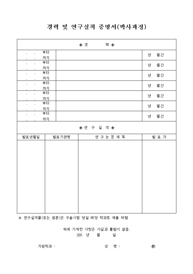 9,000원/월경력 및 연구실적 증명서(박사과정)