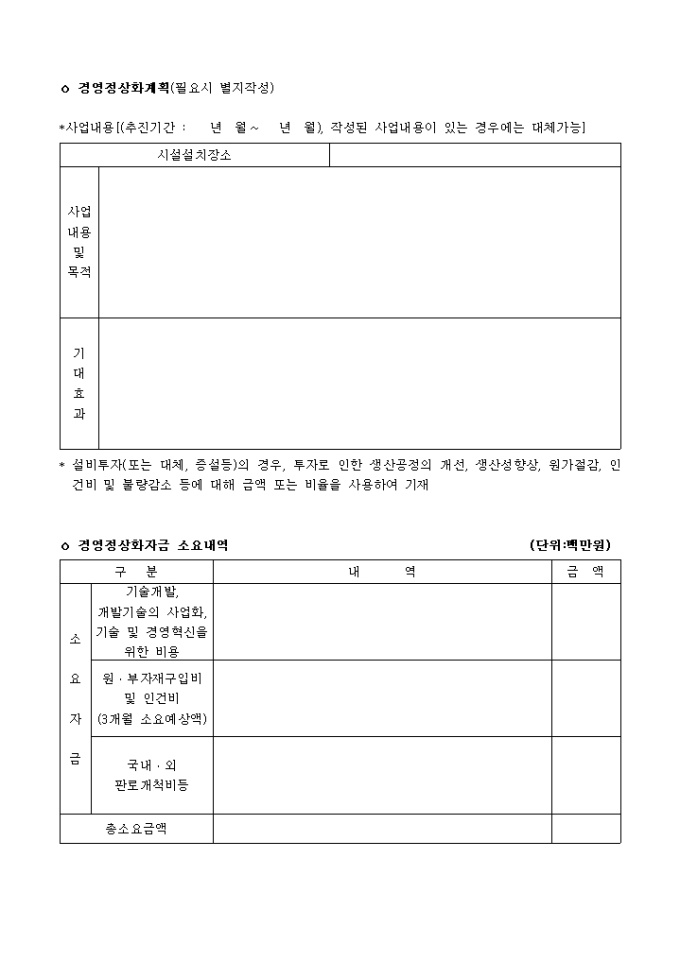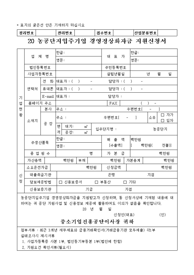 9,000원/월농공단지입주기업 경영정상화자금 지원신청서