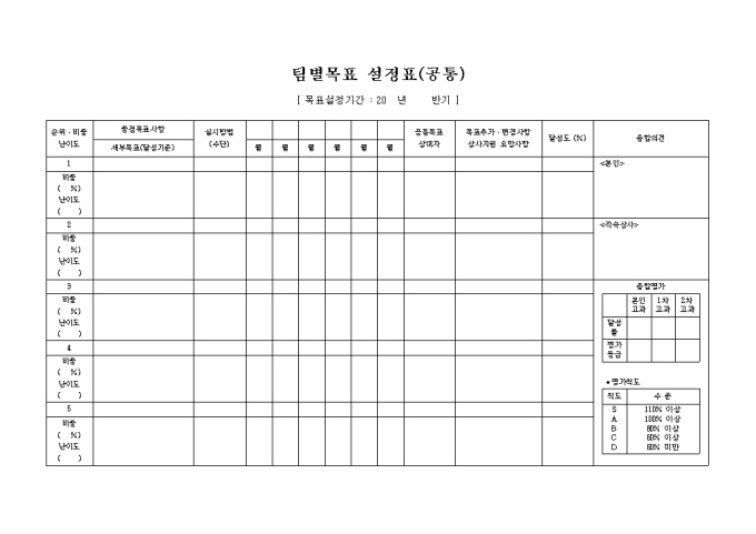 9,000원/월중점목표사항 및 세부목표(달성기준), 실시방법(수단), 목표추가 및 변경사항, 상사지원 요망사항, 달성도, 종합의견, 평가 등으로 구성되어 있습니다.
