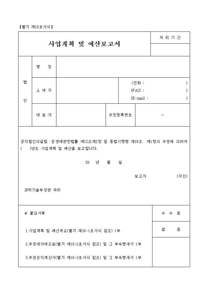 9,000원/월명칭, 소재지, 대표자 등을 기재하며, 공익법인의설립 운영에관한법률 제12조제2항 및 동법시행령 제19조 제1항의 규정에 의하여 ○년도 사업계획 및 예산 보고시 사용하는 양식입니다.
