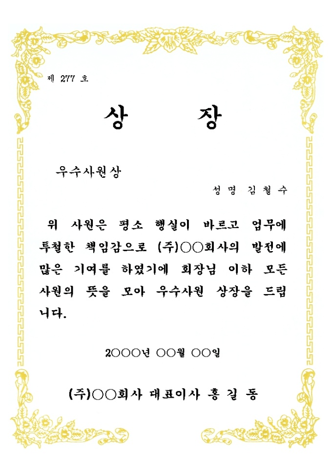 9,000원/월회사발전에 기여 하였거나 업무향상에 도움을 주었을경우에 쓰이는 서식입니다.