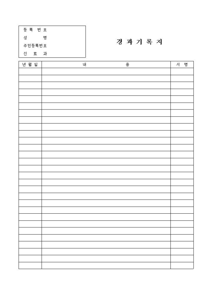 9,000원/월환자 상태 경과에 대한 기록을 남기는 양식입니다. 날짜별로 내용을 기록할 수 있습니다.