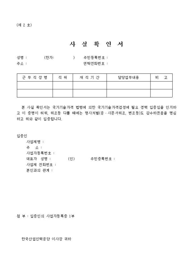 9,000원/월경력확인 사실확인서는 국가기술자격검정에 필요 경력 입증임을 인지하고 사실을 확인할때 사용하는 양식입니다.
