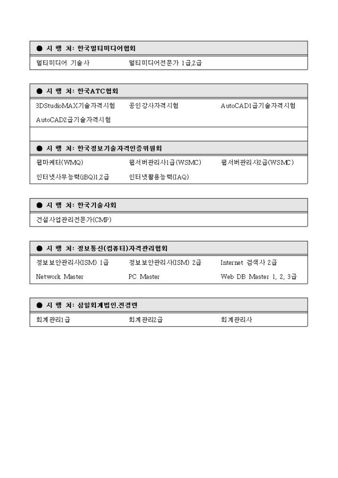 9,000원/월민간자격증 종류를 나타낸 리스트 양식입니다. 시행처별로 해당 자격증을 확인하실 수 있습니다.