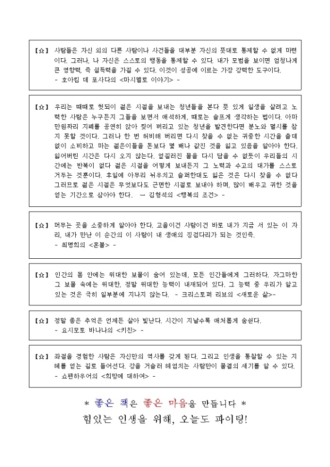9,000원/월삶을 일깨우는 책 속에 담겨진 명언들을 정리해 놓았습니다.