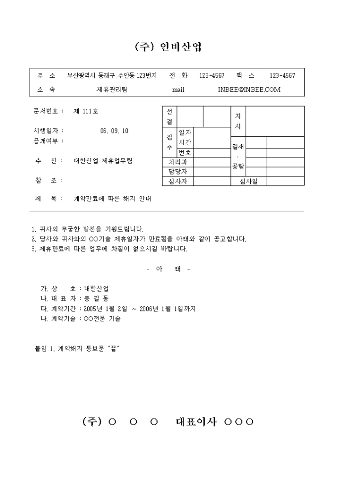 9,000원/월기존의 공문형태로 작성된 것이며 계약기간이 만료됨에 따라 업무에 차질이 생기지 않도록 공문을 발송할때 사용되는 서식입니다.