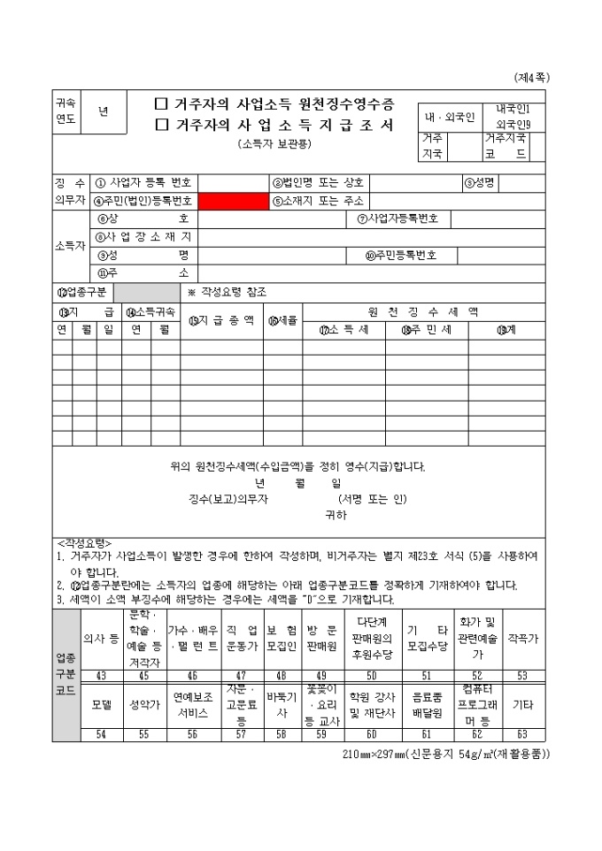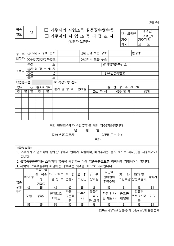9,000원/월[2006년연말정산]거주자의사업소득원천징수영수증 양식입니다. 2006년 연말정산에 대한 거주자의사업소득원천징수영수증 양식입니다.
