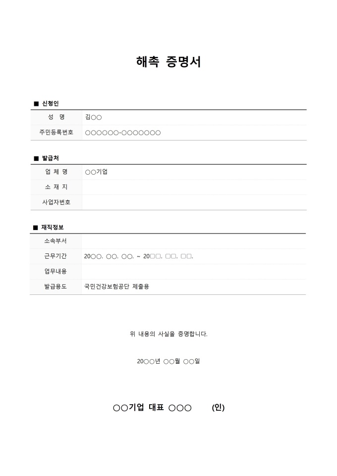 직원의 퇴사 및 해촉 사실을 증명하는 공식 서류