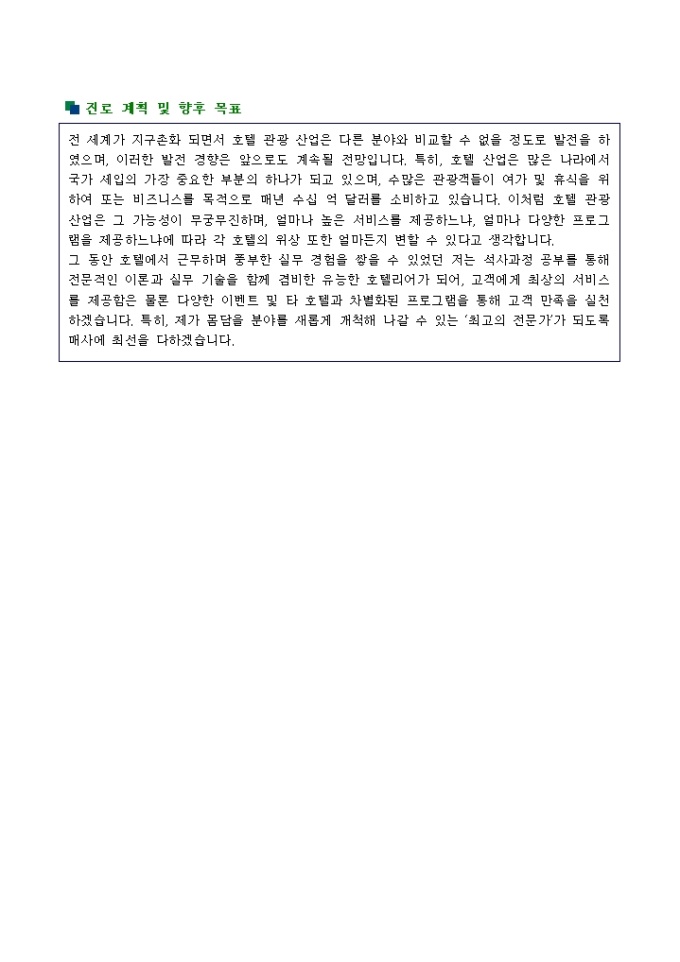 9,000원/월[지원동기] 서비스 분야의 대표주자라 할 수 있는 ´호텔´ 운영에 있어 가장 중요한 것은 바로 서비스의 질과 차별화된 프로그램을 통해 고객 만족을 실천하는 것이라고 생각합니다. 즉, 얼마나 타 호텔과 차별화된 프로그램과 서비스로 고객의 시선을 사로잡느냐, 한번 방문한 고객을 영원한 단골로 만들 수 있느냐가 중요하다고 생각합니다.