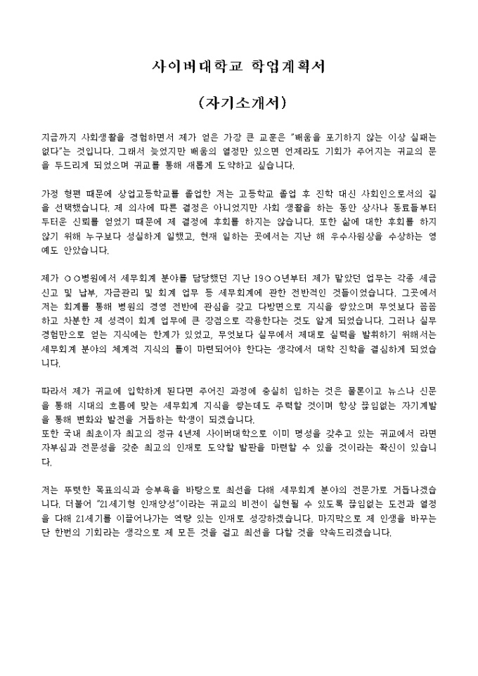 9,000원/월지금까지 사회생활을 경험하면서 제가 얻은 가장 큰 교훈은 '배움을 포기하지 않는 이상 실패는 없다'는 것입니다. 그래서 늦었지만 배움의 열정만 있으면 언제라도 기회가 주어지는 귀교의 문을 두드리게 되었으며 귀교를 통해 새롭게 도약하고 싶습니다.