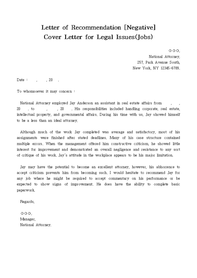 9,000원/월법률회사 입사에 대한 부정적인 의견을 밝힌 영문 추천서입니다.