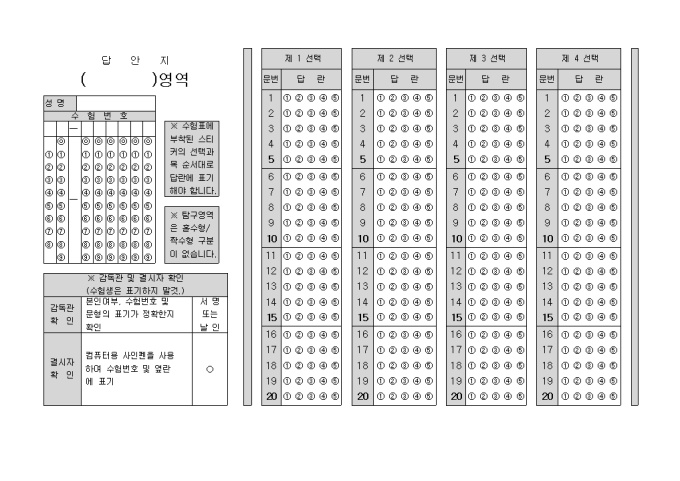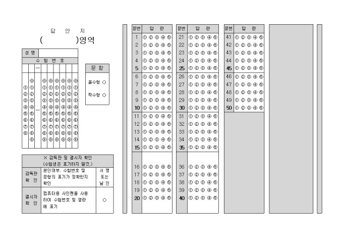9,000원/월학교에서 사용할 수 있는 OMR답안지 양식입니다.