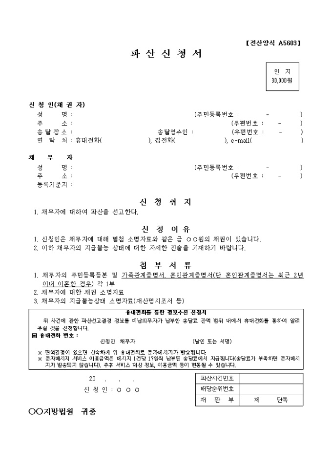 9,000원/월2008년 1월 1일 개정된 채권자용 파산신청서입니다.