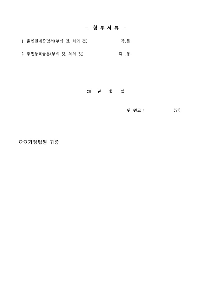 9,000원/월원고와 피고의 이혼신고는 무효임을 확인한다 라는 판결을 구하는 이혼무효합의서 양식입니다.