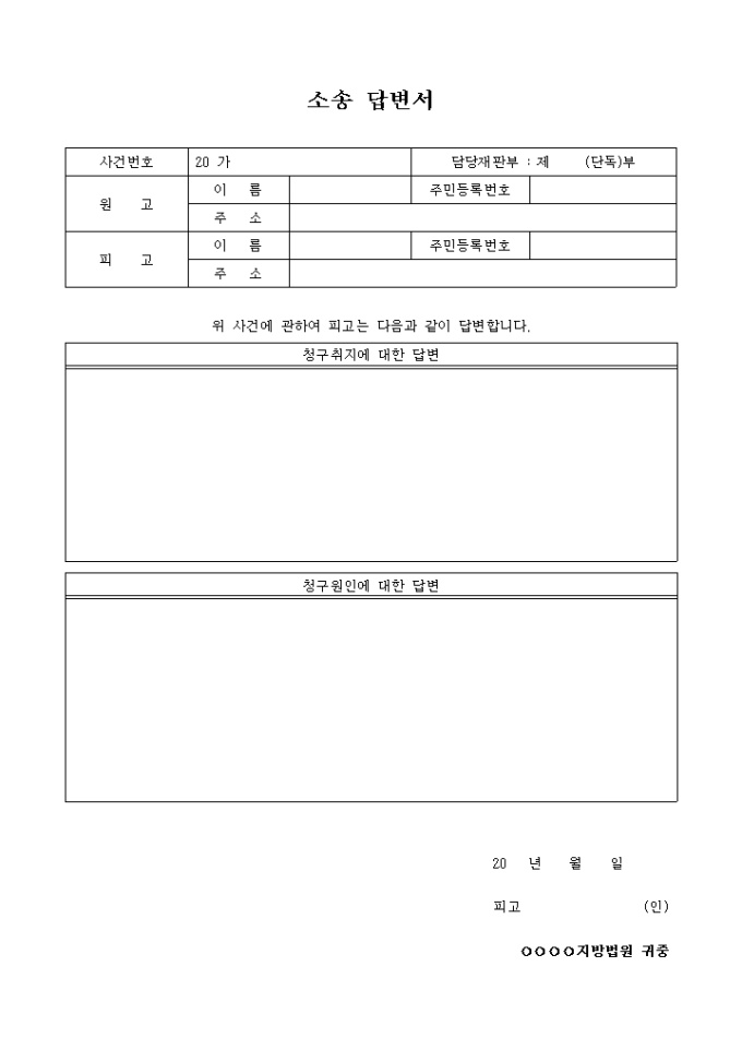 9,000원/월민사소송에 대한 답변에 있어서 청구답변을 할 수 있는 서식입니다.
