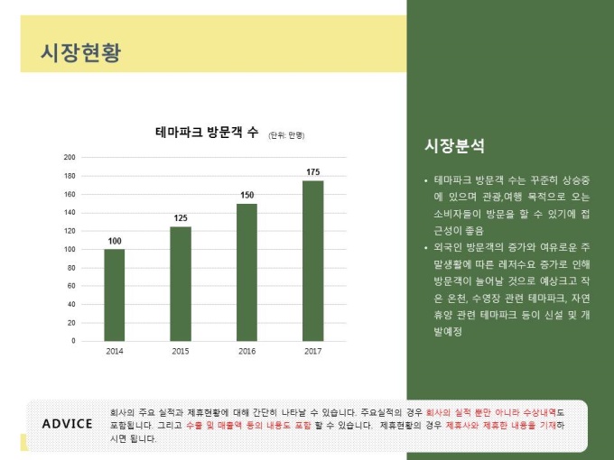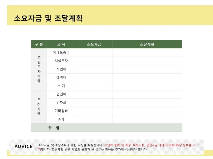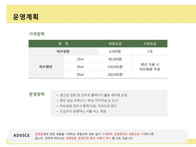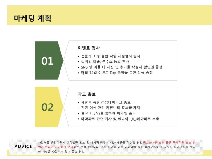 사업운영 전반에 대한 표준사업계획서입니다. 프레젠테이션을 위한 애니메이션 슬라이드, 숫자만 입력하면 자동 완성되는 자동차트, 표준화된 목차 및 전문가의 조언이 포함되어 있습니다.