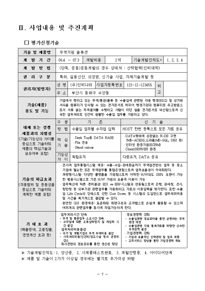 9,000원/월실제 벤처기업 서류심사 시 제출했던 샘플이며, 서류심사 통과 후 벤처인증 성공한 서식예제입니다. 벤처기업의 평가를 위한 소프트웨어개발 기술사업계획서입니다. 본 사업계획서는 벤처기업 확인업무에 중요한 자료로 사용하므로 정확하고 객관적으로 작성하여야 하며 기재사실과 실제내용이 다른 경우 불이익을 받을 수 있습니다. 샘플이 작성되어 있습니다.