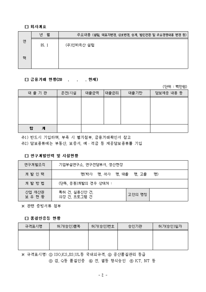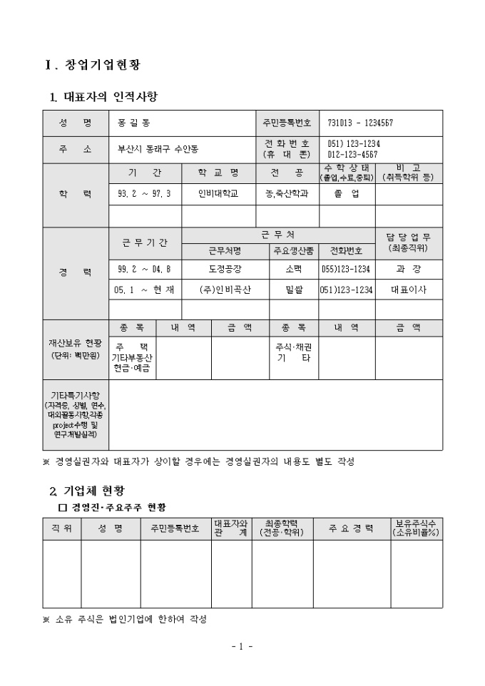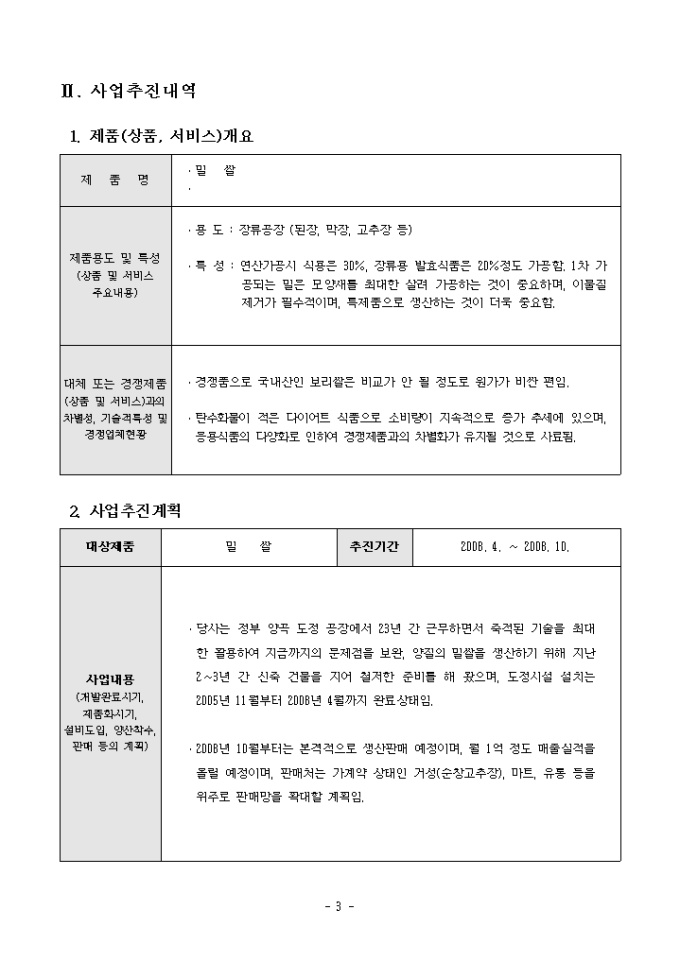 9,000원/월실제 곡물재배에 관련하여 중소, 벤처기업 창업자금 지원신청서 서류심사 시 제출한 샘플이며, 서류심사 통과에 성곤한 서식예제입니다. 창업기업현황, 사업추진내역 등의 항목으로 구성되어 있습니다.