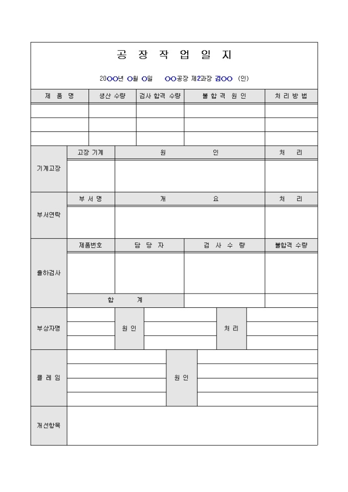 9,000원/월공장에서 사용하는 표형식의 일반적인 공장작업일지입니다.