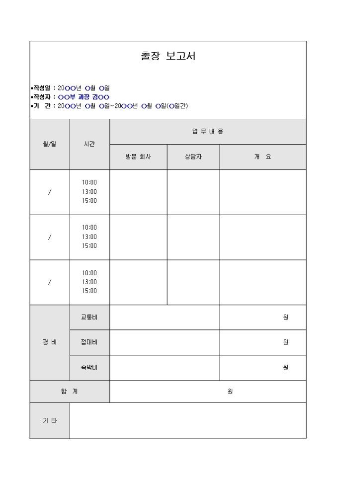 9,000원/월표형식으로 간결하고 정확하게 정리하는 단기출장보고서입니다.