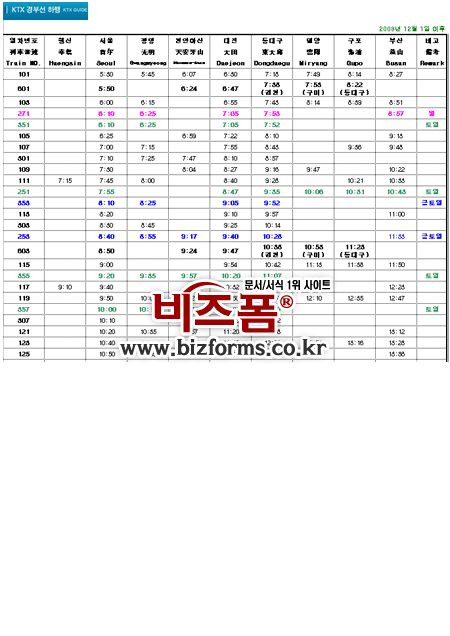 9,000원/월2008년 12월 1일 이후부터 운행되는 KTX 운행시간표입니다.
