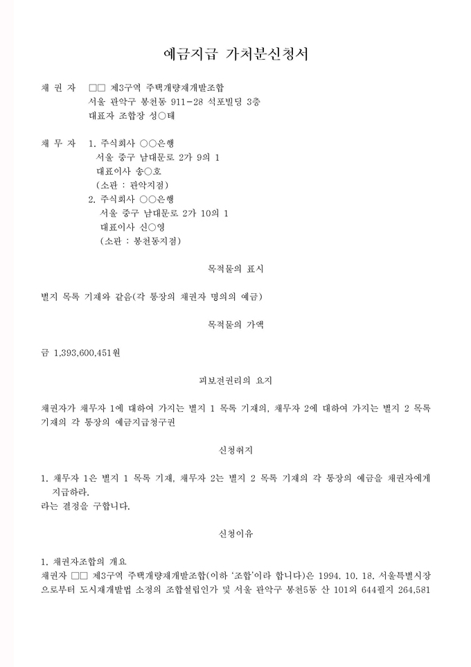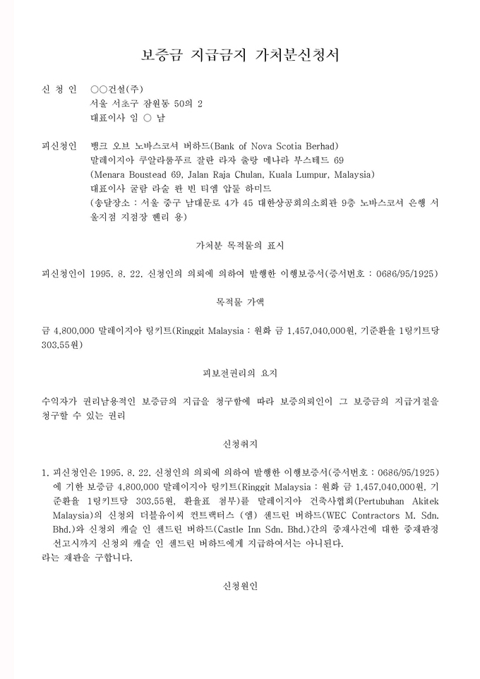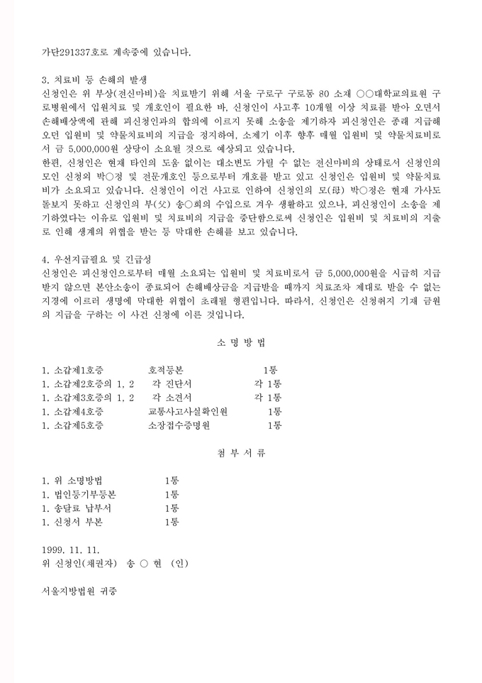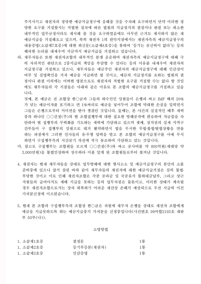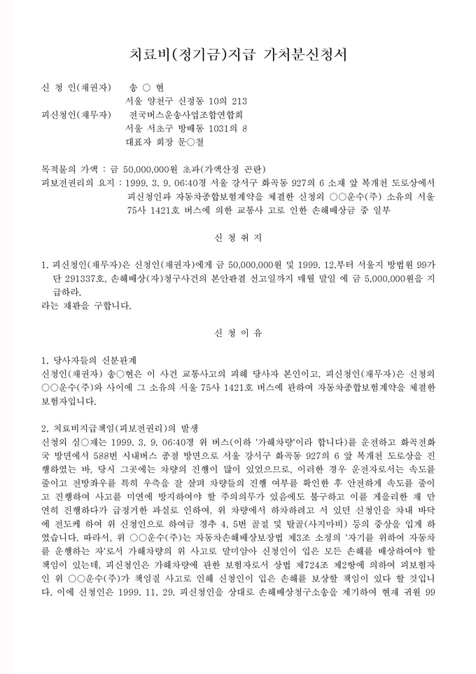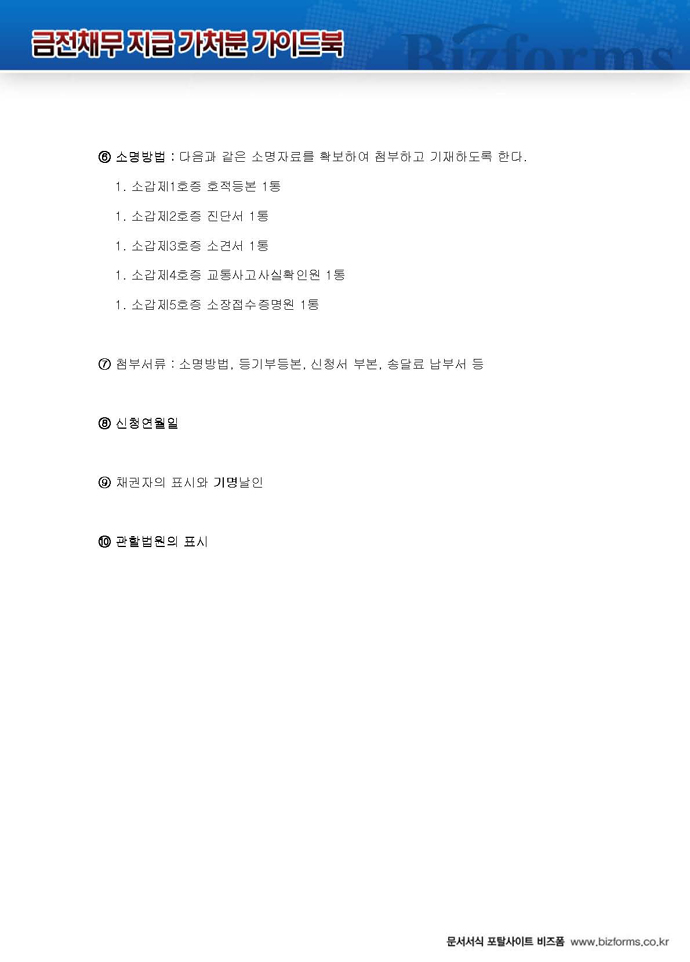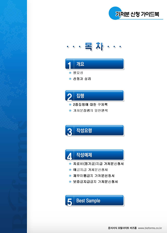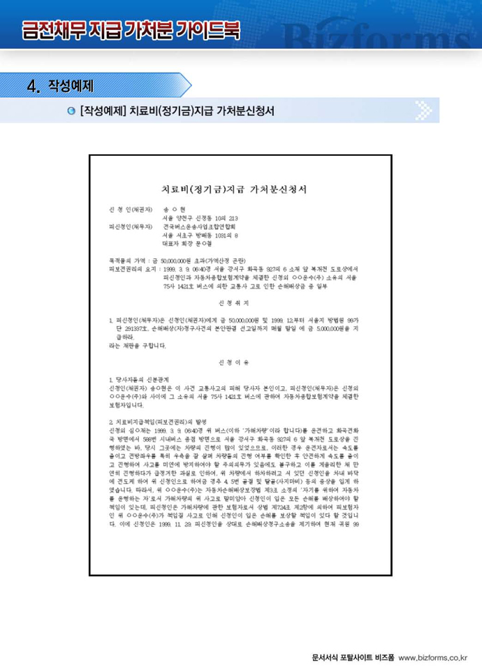 9,000원/월구성 예제 : 보증금지급금지 가처분신청서, 예금지급 가처분신청서, 채무이행금지 가처분신청서, 치료비(정기금)지급 가처분신청서 ※ 한글(hwp), 워드(doc), 아크로벳(pdf) 파일로 구성되어 있습니다. 금전채무 지급 가처분 가이드 : 금전채무 지급 가처분에 대한 전반적인 설명과 함께 작성법, 사례별 작성예제, 전문가 추천 예제 등이 포함되어 있습니다.