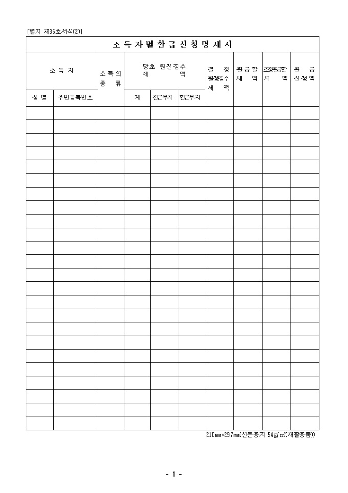 9,000원/월[2008년 연말정산]소득자별 환급신청 명세서입니다.