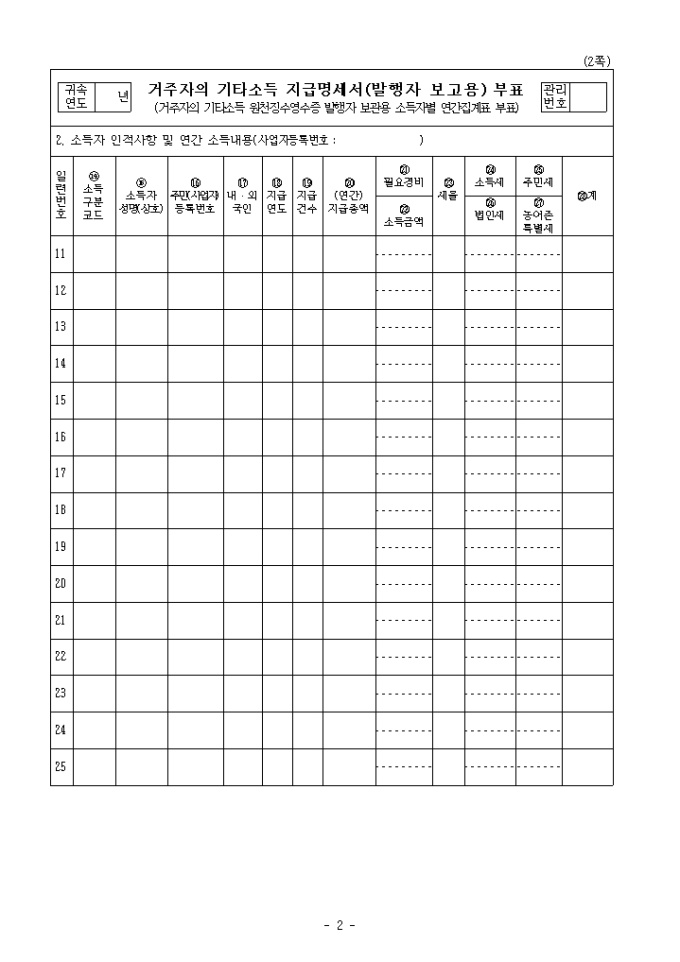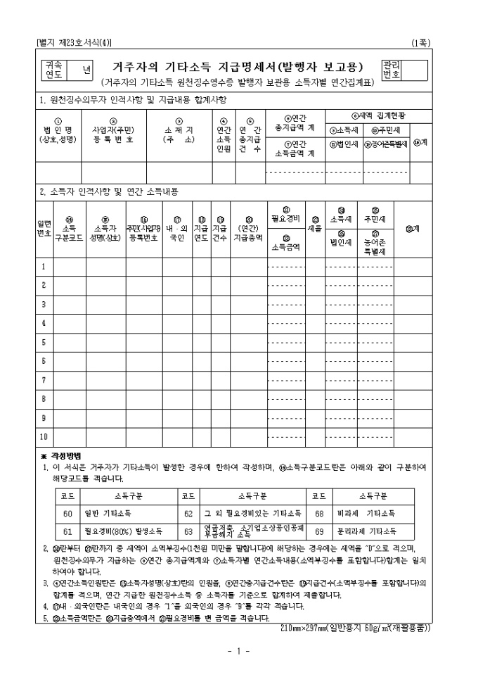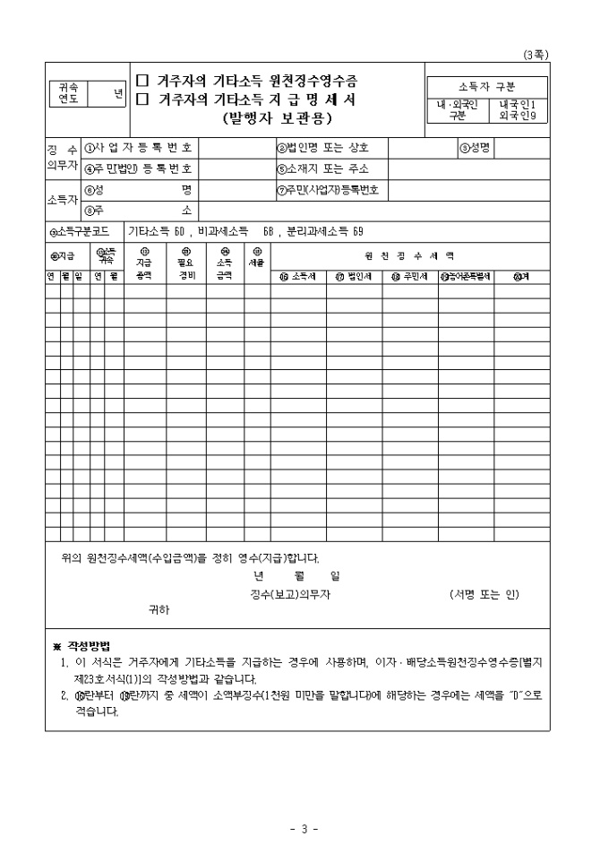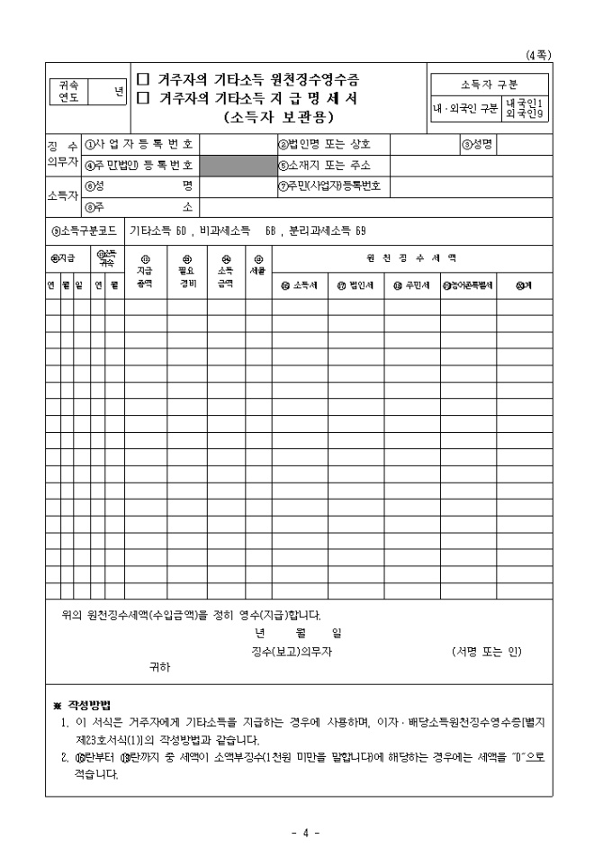 9,000원/월[2008년 연말정산]거주자의 기타소득 지급명세서(발행자보고용) 및 원천징수영수증입니다.